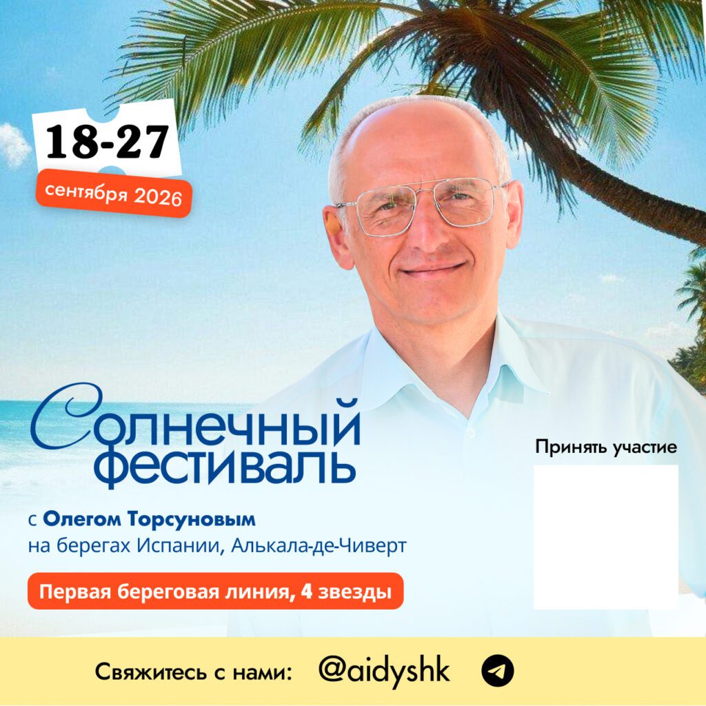 Приглашаем Вас встретить Новый Год вместе с Олегом Геннадьевичем на фестивале в Турции! Программа: лекции и живое общение с Олегом Торсуновым; совместные пробежки, «Бодрое утро» и заряд бодрости на весь год; закаливающие водные практики (в т.ч. стояние в холодной воде!); баня, хамам, сауна — очищение и восстановление; СПА, бассейн, тренажёрный зал — здоровье и энергия; […]