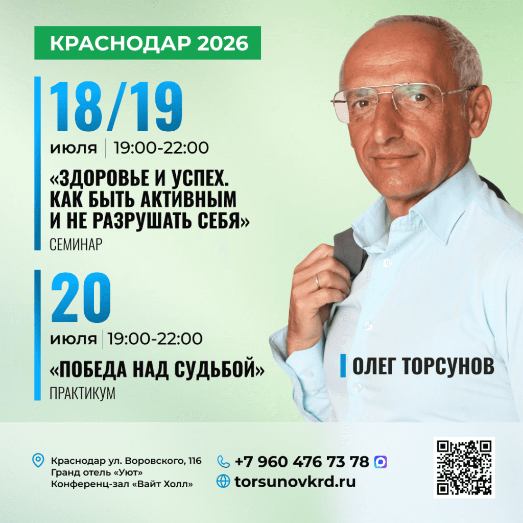 Семинар Олега Торсунова «Здоровье и успех. Как быть активным и не разрушать себя» + практикум «Победа над судьбой»
