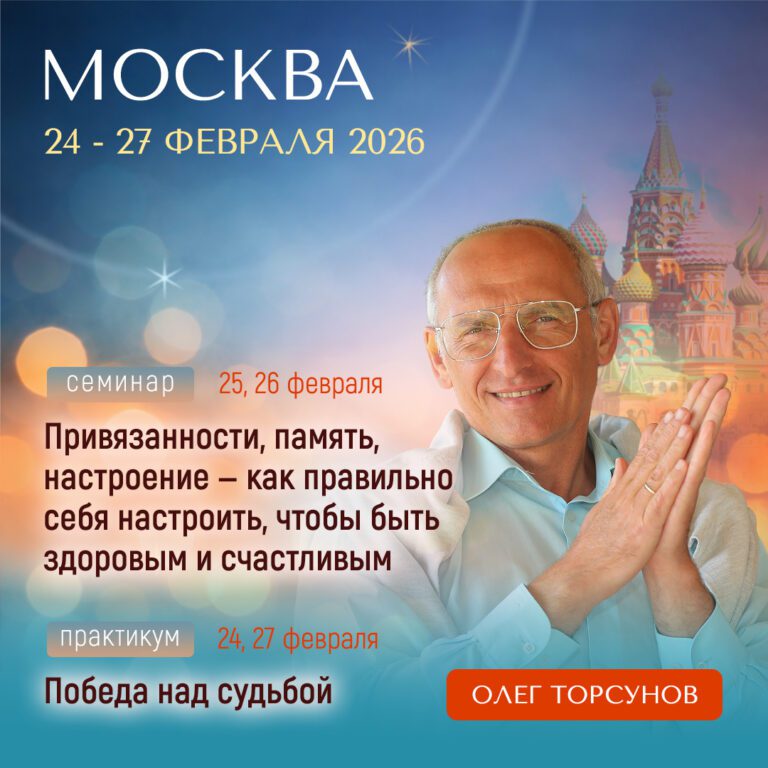 Семинар Олега Торсунова «Привязанности, память, настроение — как правильно себя настроить, чтобы быть здоровым и счастливым» + практикум «Победа над судьбой»